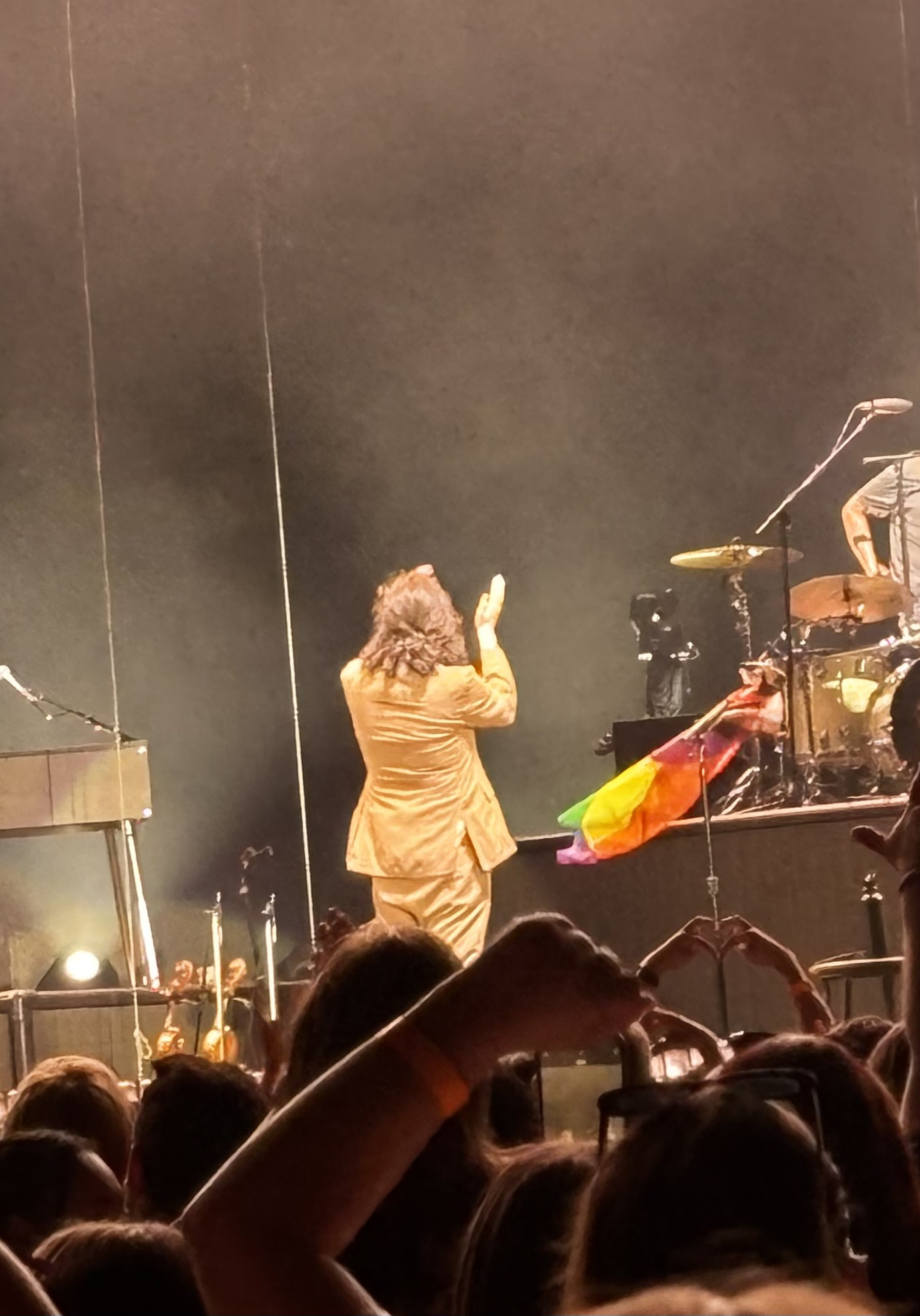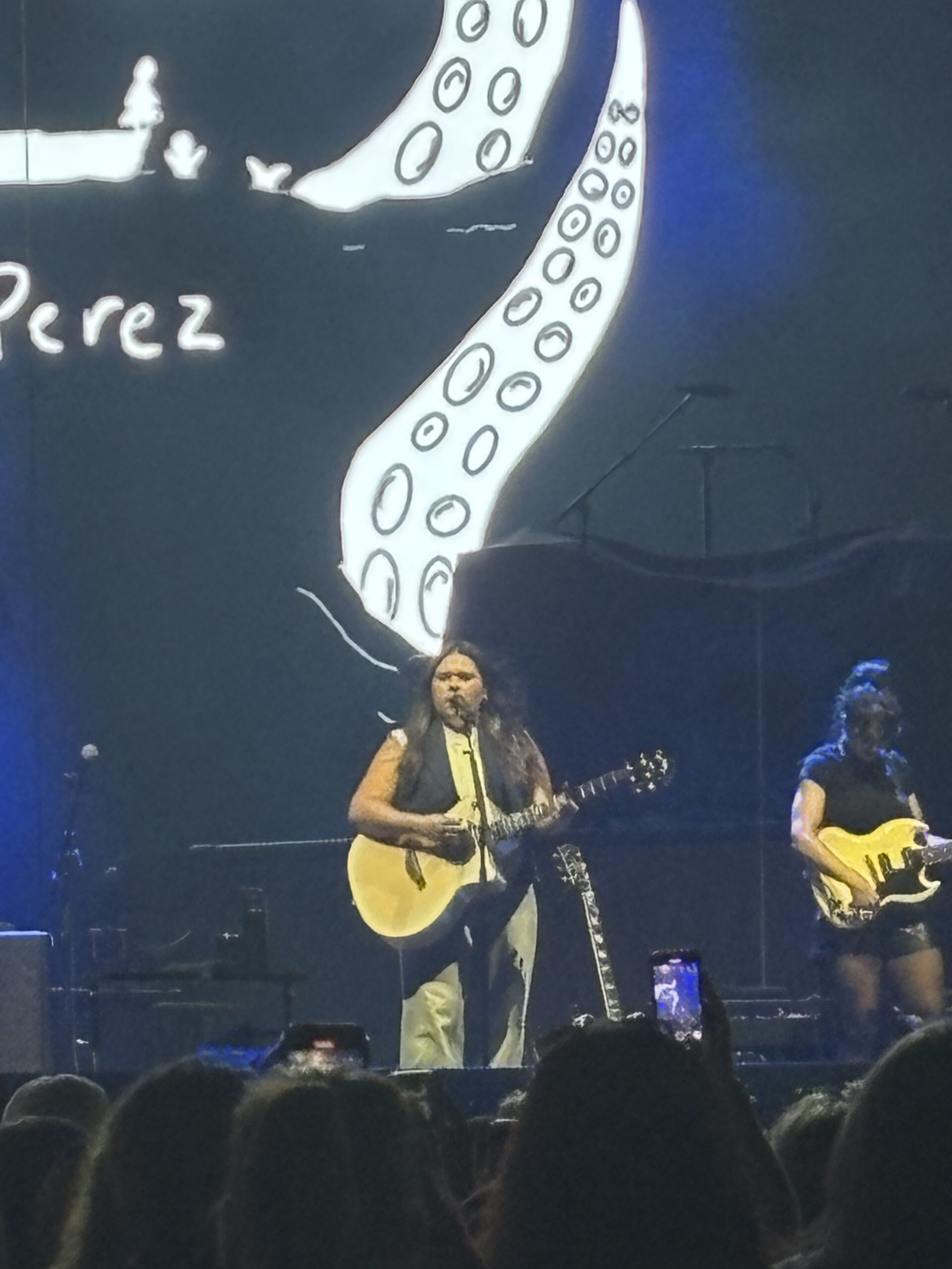 Before Hozier came on stage, he had two opening acts: an Irish band called Amble and an independent singer named Gigi Perez. Unfortunately, I missed Amble’s performance, but Perez’s performance was nothing short of incredible. Perez, who is known for her hit single “Sailor Song,” had only started touring in 2024, but she already has an extremely strong stage presence. Her confidence is radiant, and her voice is gorgeous; I would argue that she sounds better live than she does in the studio. Perez was also very complimentary of Hozier and repeatedly said that the concert would “change your life;” It is clear that they work very well together and really appreciate each other. Since Hozier’s tour ended, Perez has begun touring on her own, which I cannot recommend highly enough. out of those I’ve seen, she is one of the best performers of our generation.