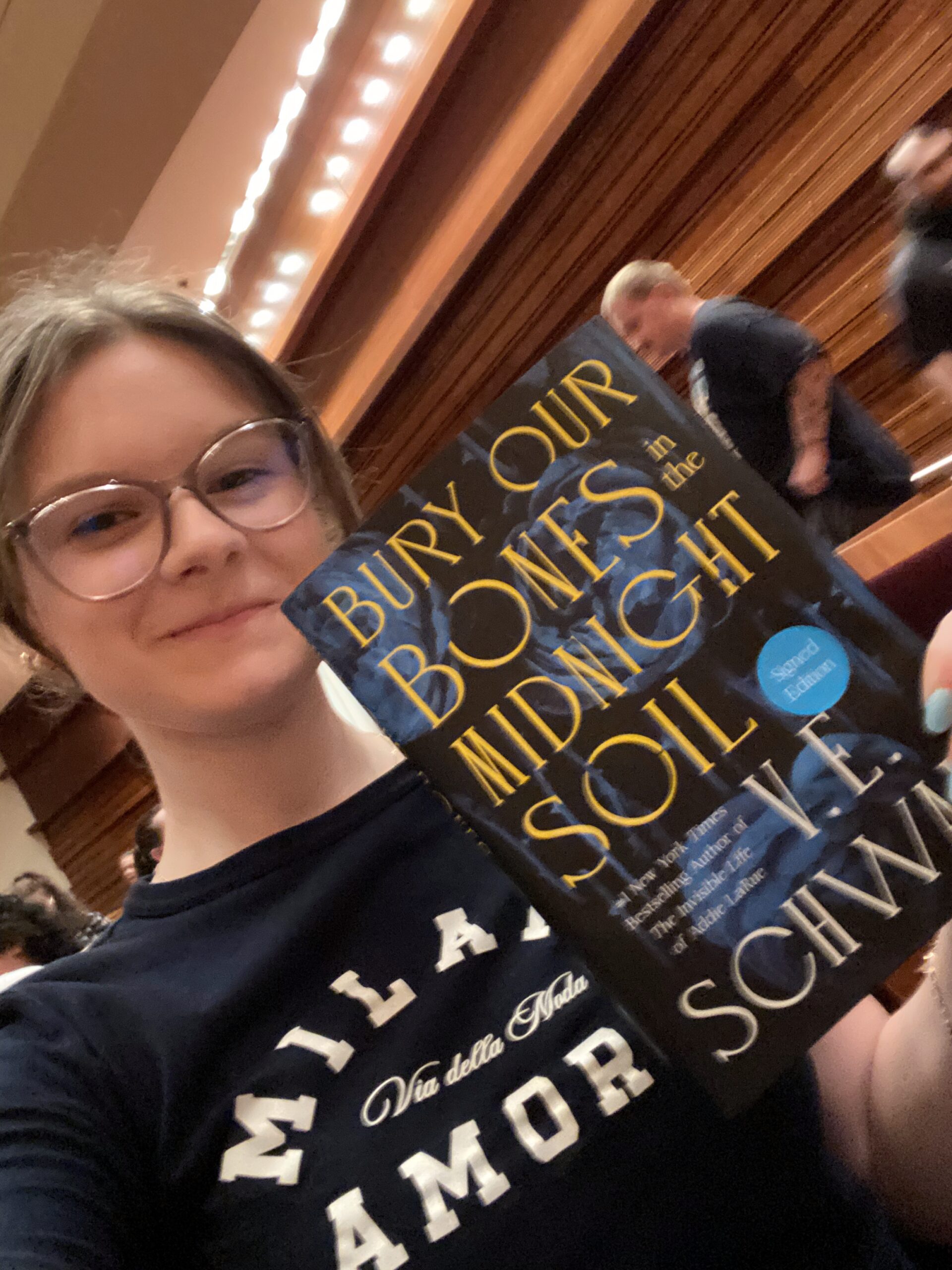 Rachel Gillig, known for her Shepherd King Duology (which consists of One Dark Window and Two Twisted Crowns), has now released her start of a new duology. Sara and I went to see her on the release day of the book, and I promptly devoured it over the following few days. The Knight and the Moth was a wonderful fantasy with a subplot of romance, which happens to be my favorite type of book. It was incredible: Gillig delivered on her signature gothic fantasy vibe, but the world felt very different from her previous series. There is a fascinating magic system, and the world has an entire lore and religion behind it. The cast of characters was wonderful, and as much as I loved the leads, Sybil and Rory, the character who truly took my heart was the talking gargoyle that accompanied them on their journey. The premise behind the story is so fascinating, and the whole book ended up being just as interesting as I had hoped. In her typical style, Gillig chose to end the novel with an insane cliffhanger, and I have been anxiously awaiting the next book ever since I read the last page.