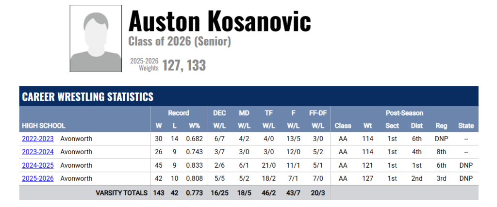 Senior Austin Kosanovic’s states appearance for WPIAL wrestling, boys and girls swim wins at WPIALs, including the boys winning gold…